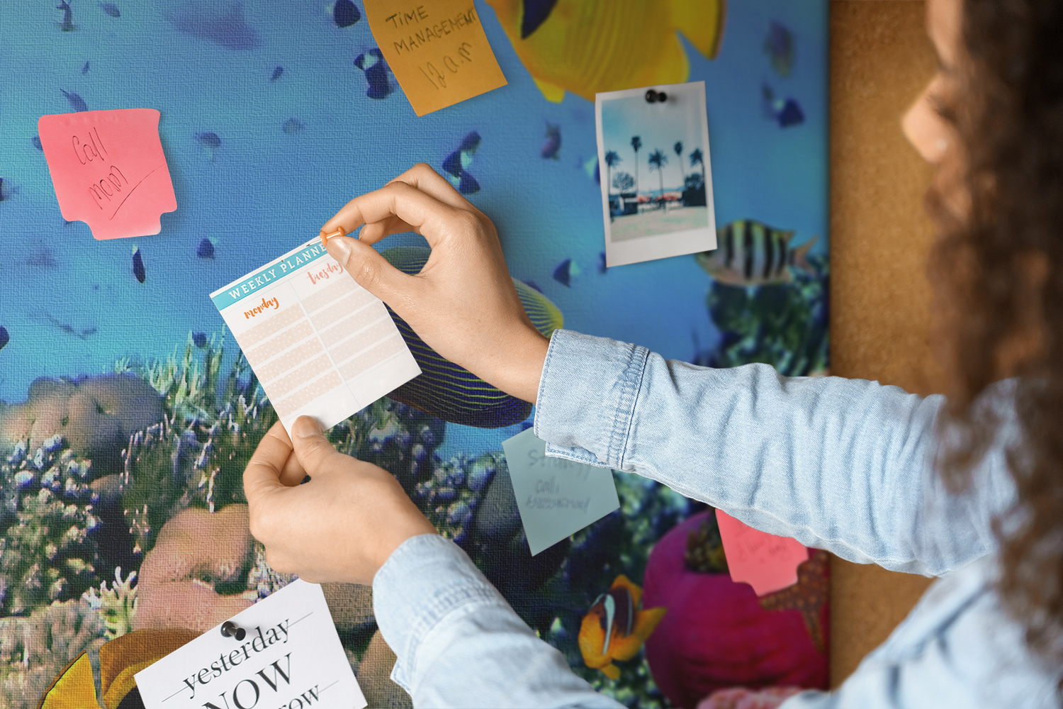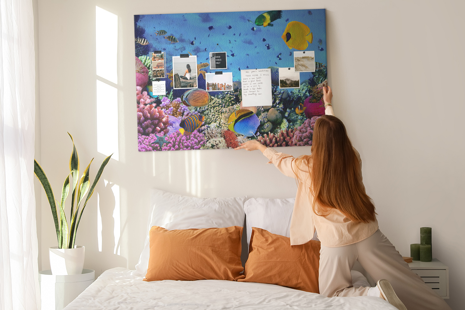 Nadruk na tablicy korkowej jest dostosowywany do Twoich preferencji. Możesz wybrać spośród szerokiej gamy wzorów, motywów, kolorów oraz rozmiarów.