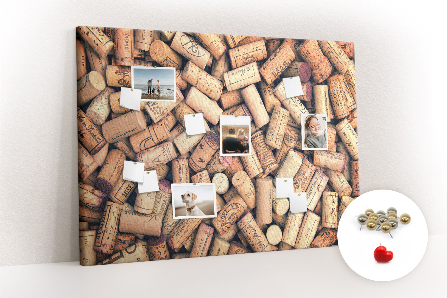 Tablica korkowa z nadrukiem z metalicznymi pinezkami