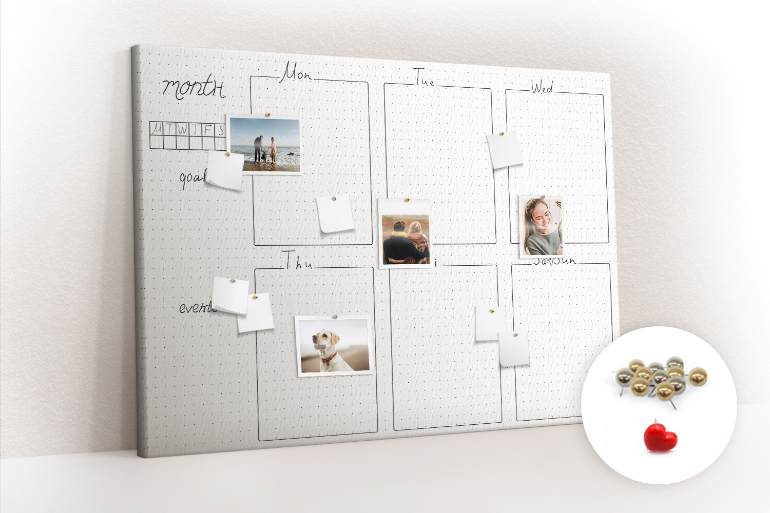 5. Mnogość zastosowań: Tablica korkowa świetnie sprawdzi się jako kalendarz, przestrzeń do zapisywania celów, lista ważnych zadań, czy miejsce do wyrażania kreatywnych pomysłów.
