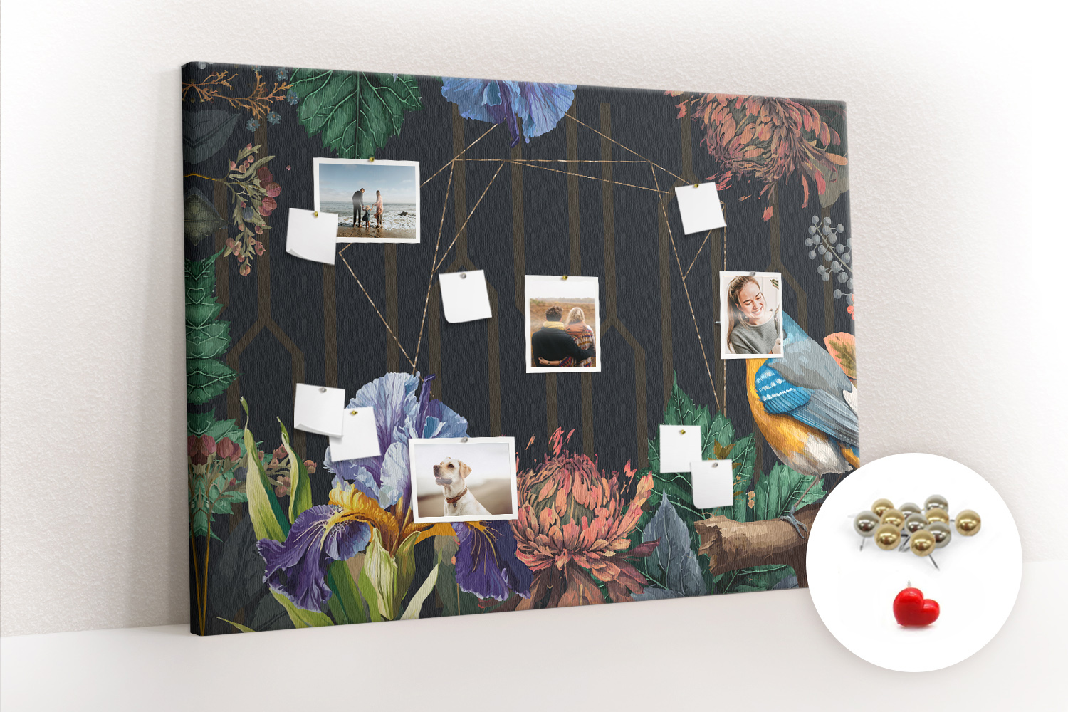 Tablica korkowa z nadrukiem z metalicznymi pinezkami