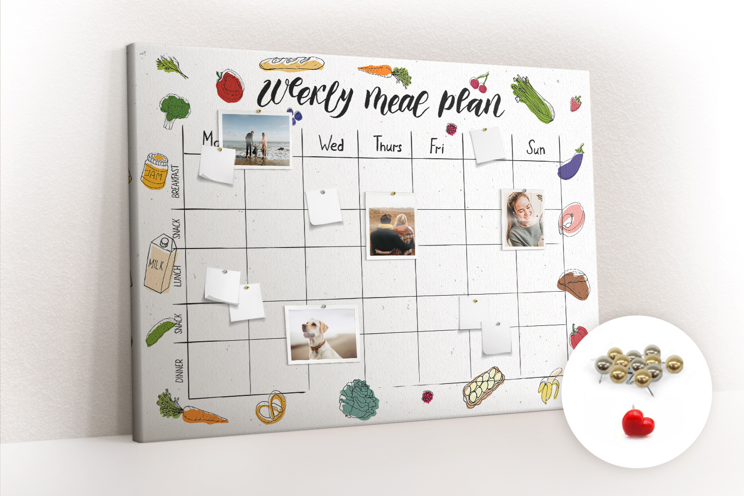 Tablica korkowa z nadrukiem z metalicznymi pinezkami