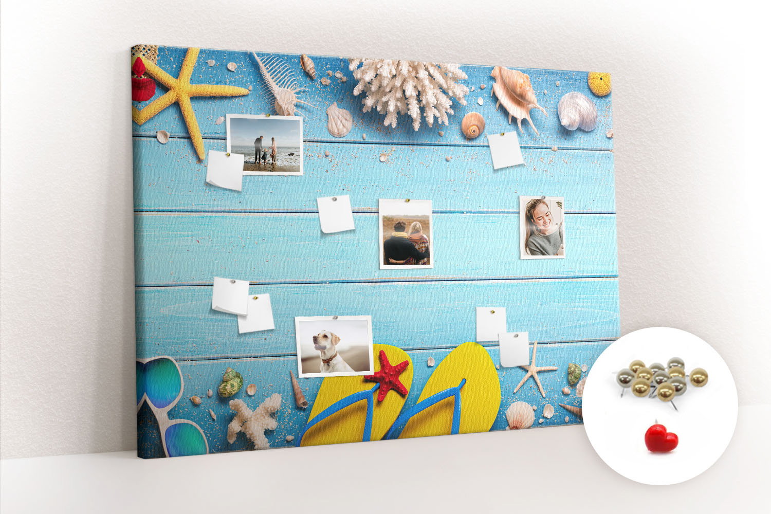 Tablica korkowa z nadrukiem z metalicznymi pinezkami