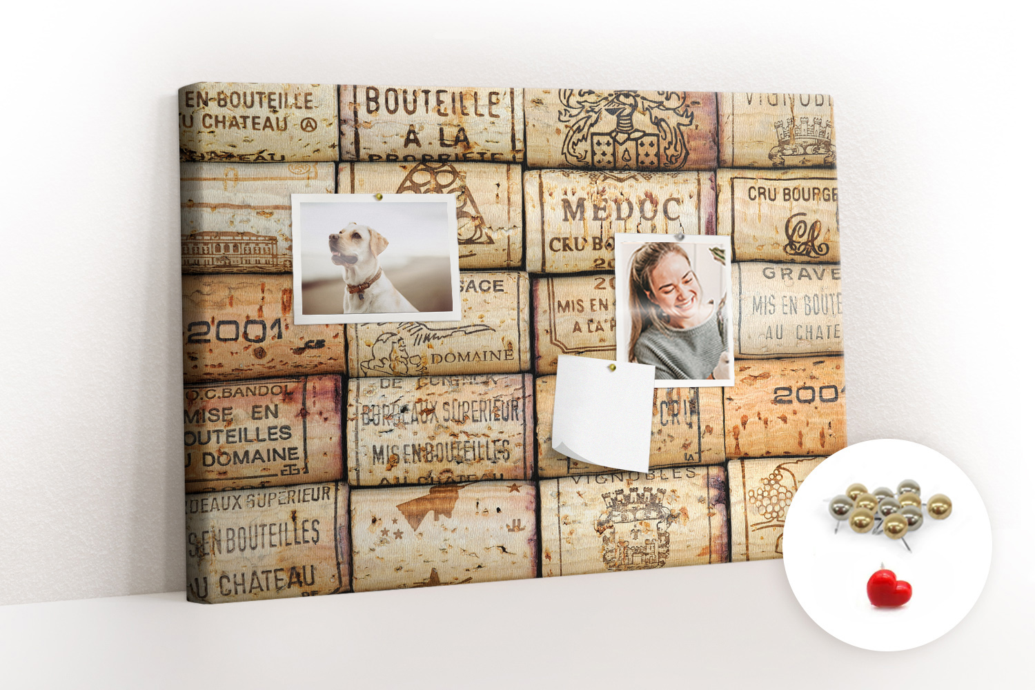 Tablica korkowa z nadrukiem z metalicznymi pinezkami