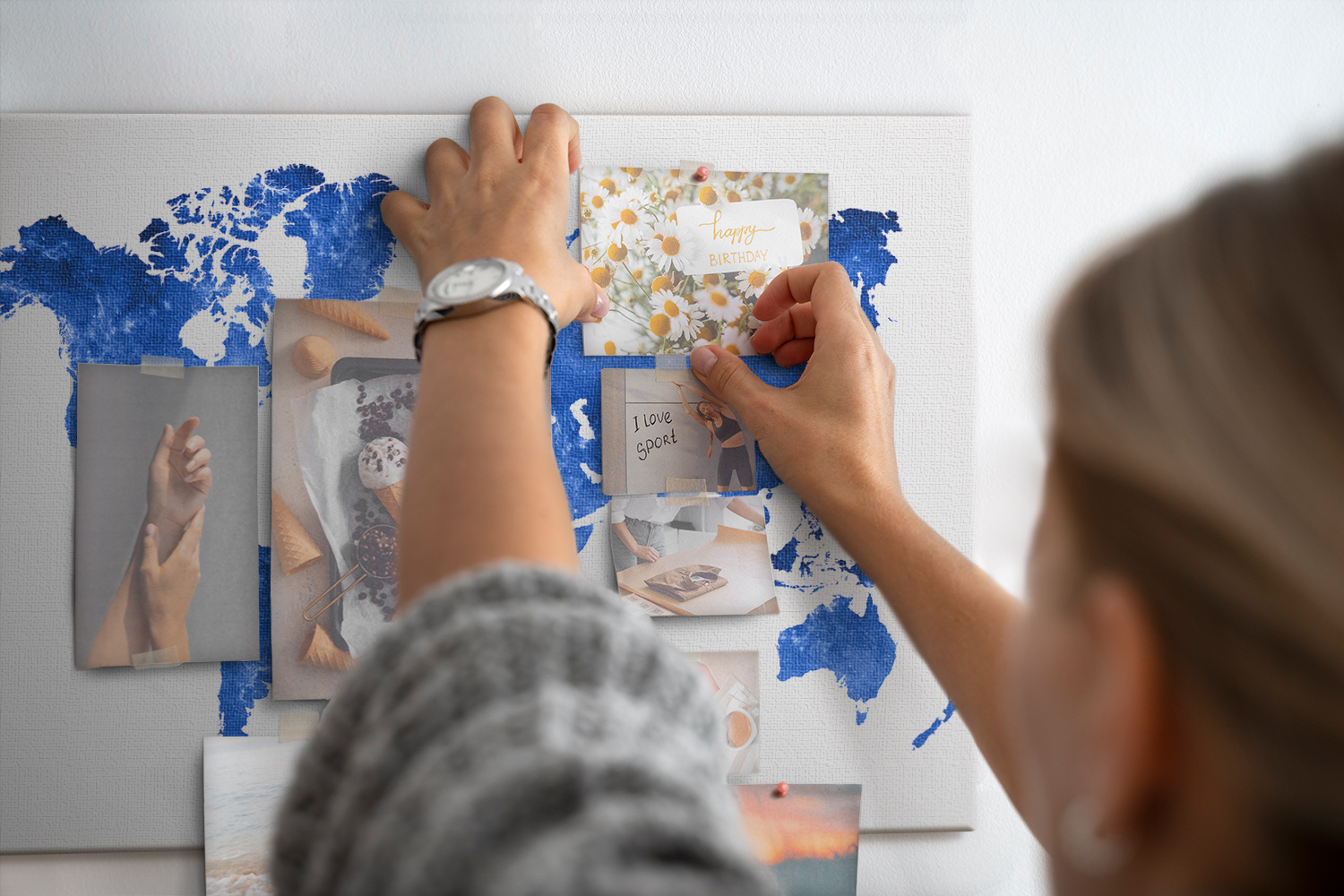 Nadruk na tablicy korkowej jest dostosowywany do Twoich preferencji. Możesz wybrać spośród szerokiej gamy wzorów, motywów, kolorów oraz rozmiarów.