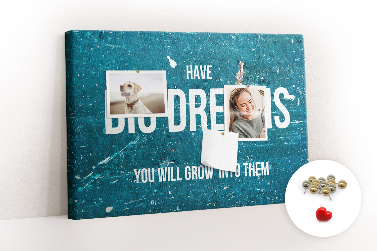 Nadruk na tablicy korkowej jest dostosowywany do Twoich preferencji. Możesz wybrać spośród szerokiej gamy wzorów, motywów, kolorów oraz rozmiarów.