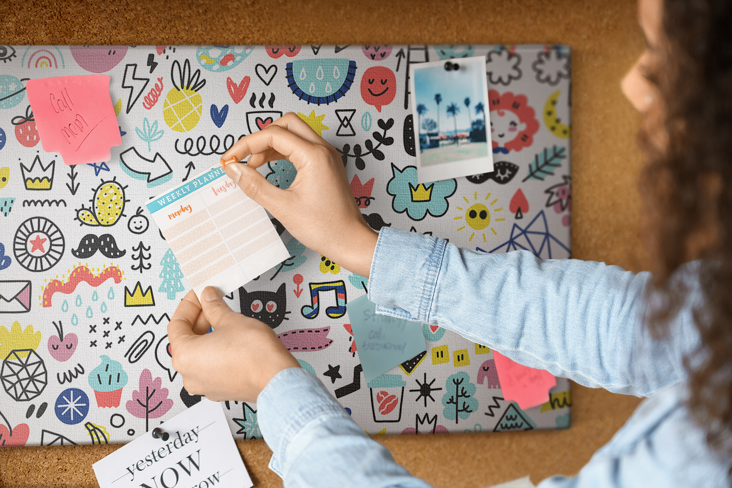 Nadruk na tablicy korkowej jest dostosowywany do Twoich preferencji. Możesz wybrać spośród szerokiej gamy wzorów, motywów, kolorów oraz rozmiarów.