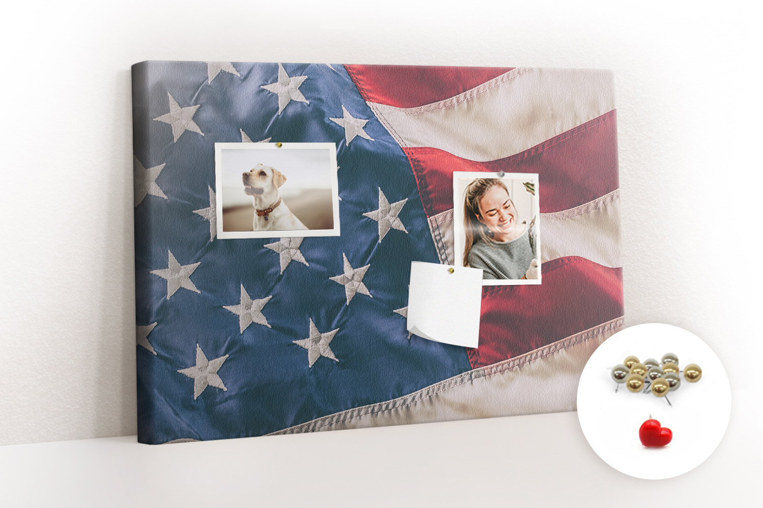Tablica korkowa z nadrukiem z metalicznymi pinezkami