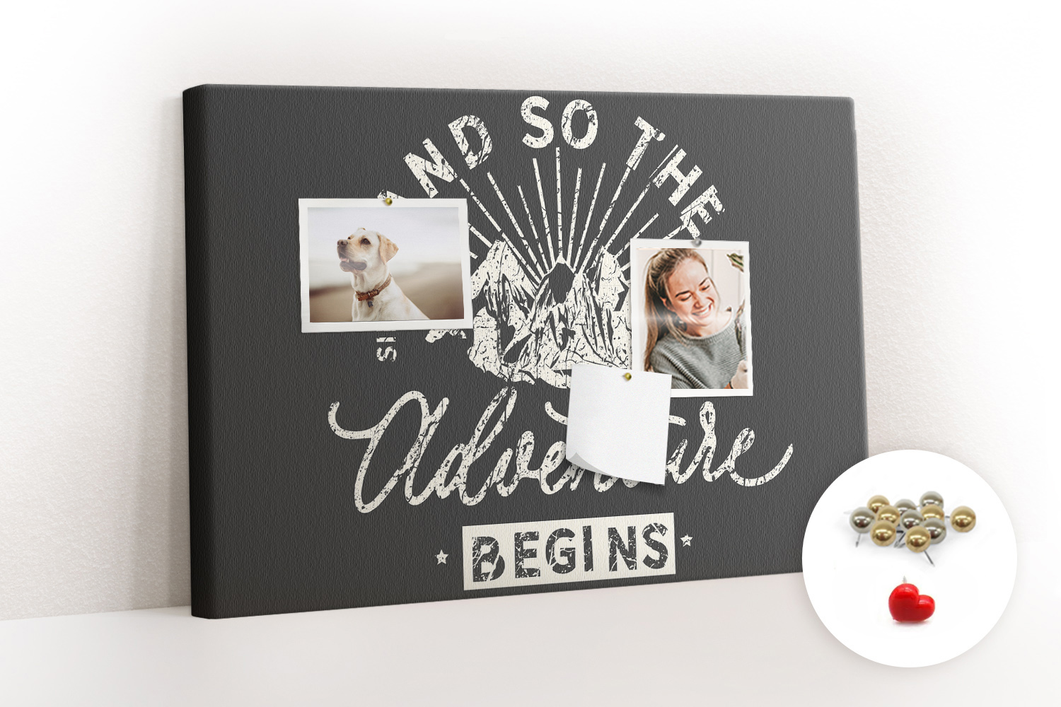 Tablica korkowa z nadrukiem z metalicznymi pinezkami