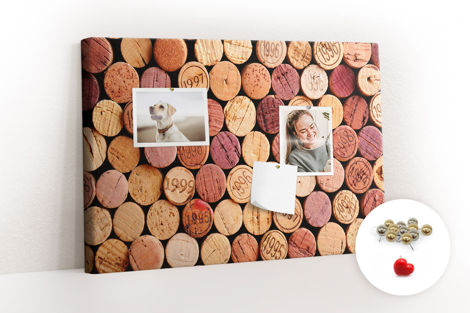 Tablica korkowa z nadrukiem z metalicznymi pinezkami