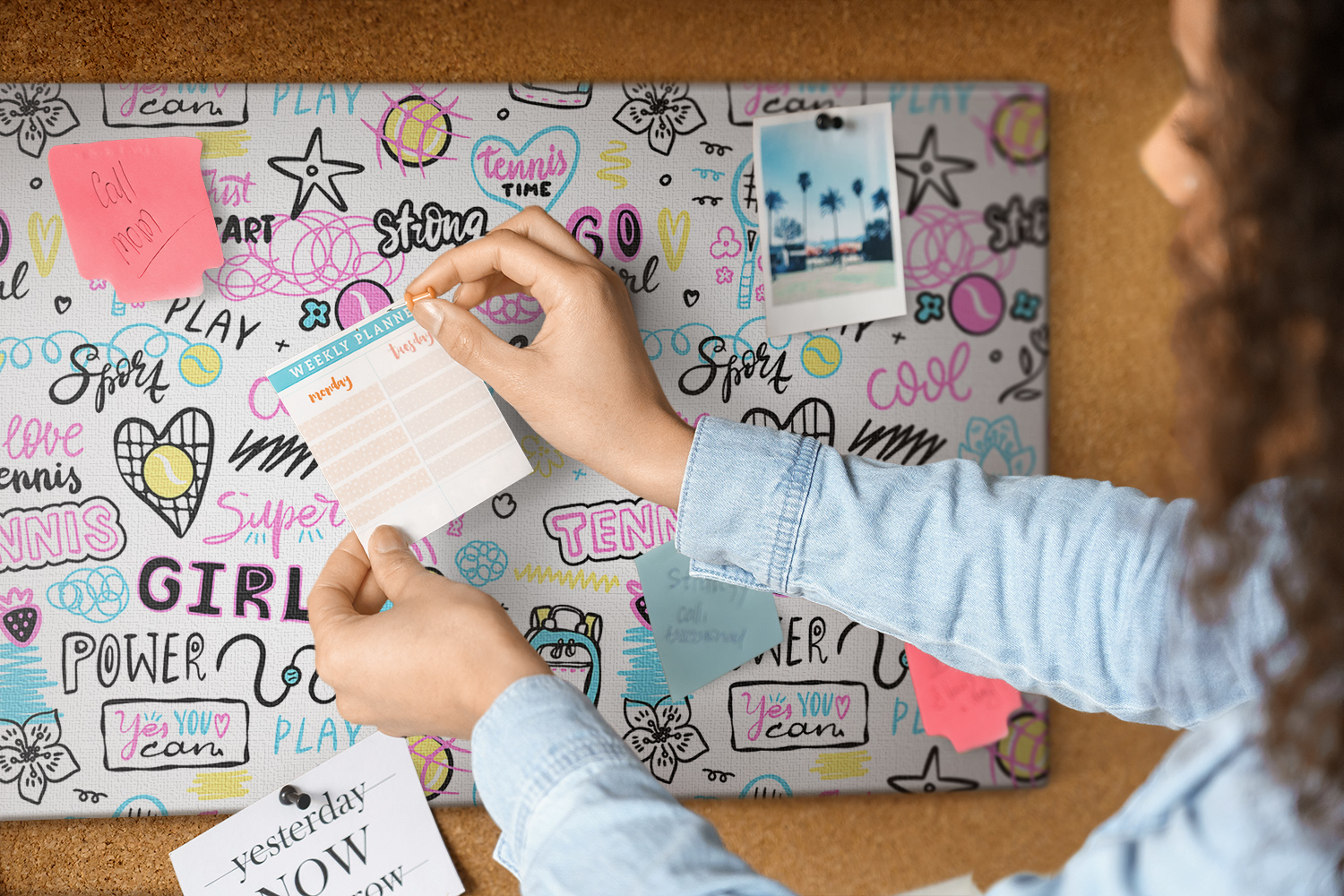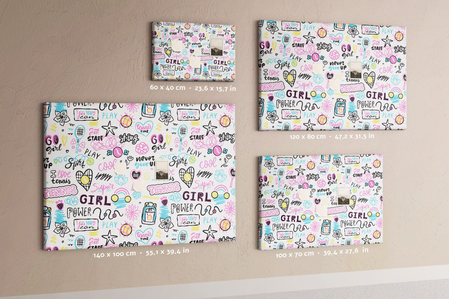 Nadruk na tablicy korkowej jest dostosowywany do Twoich preferencji. Możesz wybrać spośród szerokiej gamy wzorów, motywów, kolorów oraz rozmiarów.