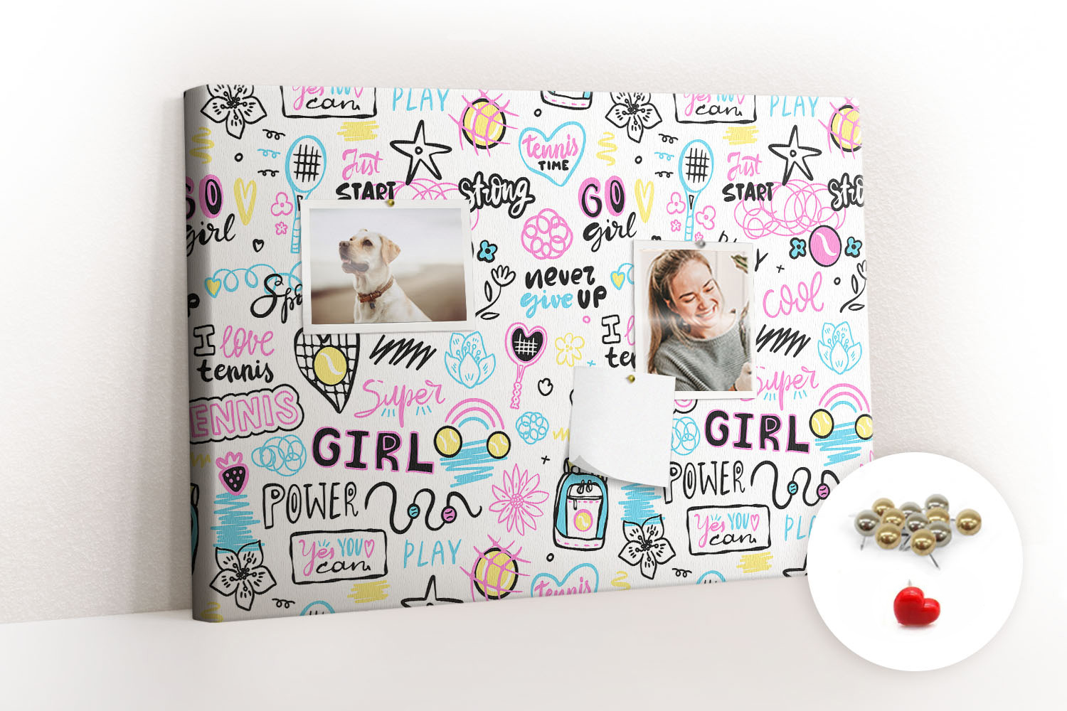 Tablica korkowa z nadrukiem z metalicznymi pinezkami