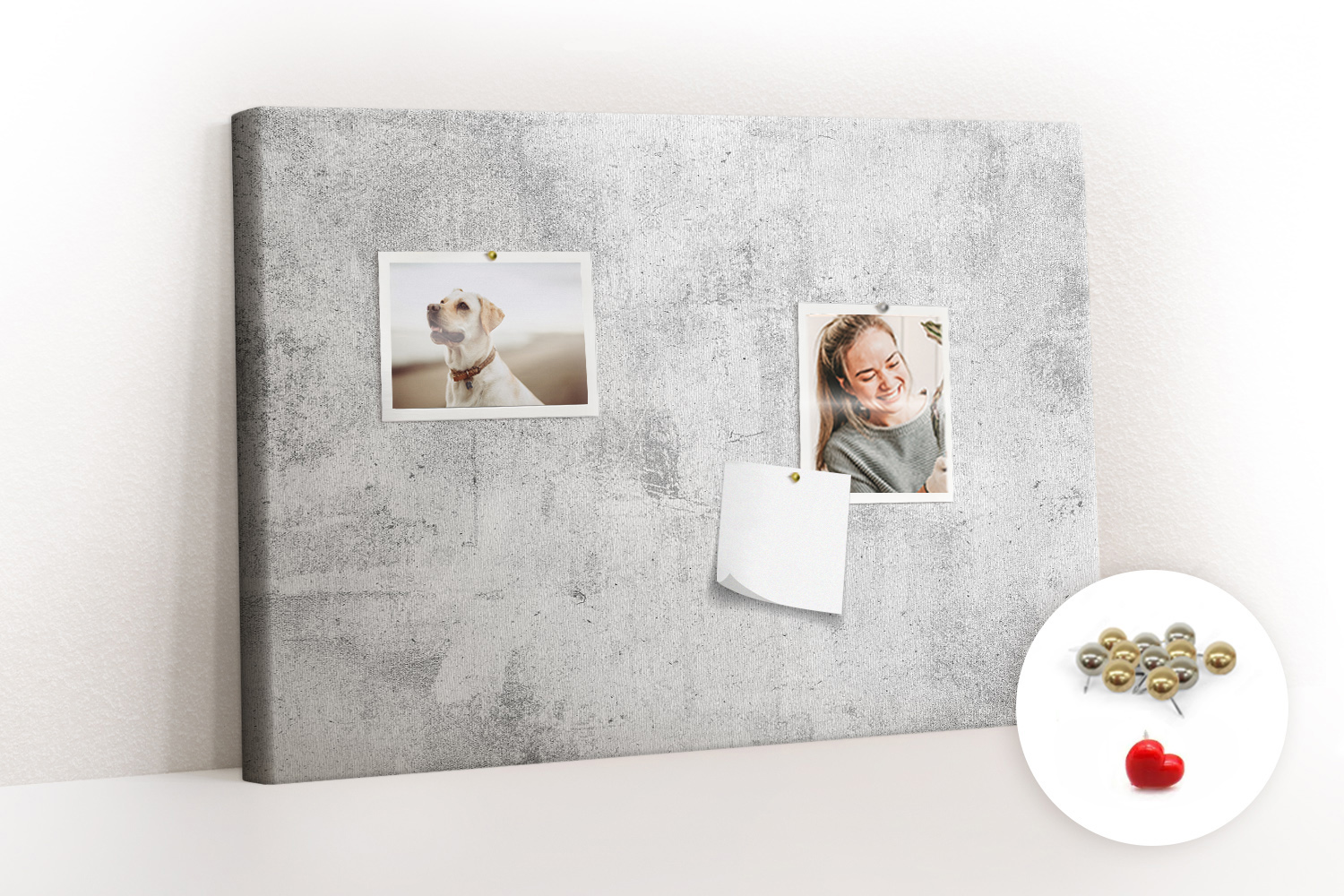 Tablica korkowa z nadrukiem z metalicznymi pinezkami