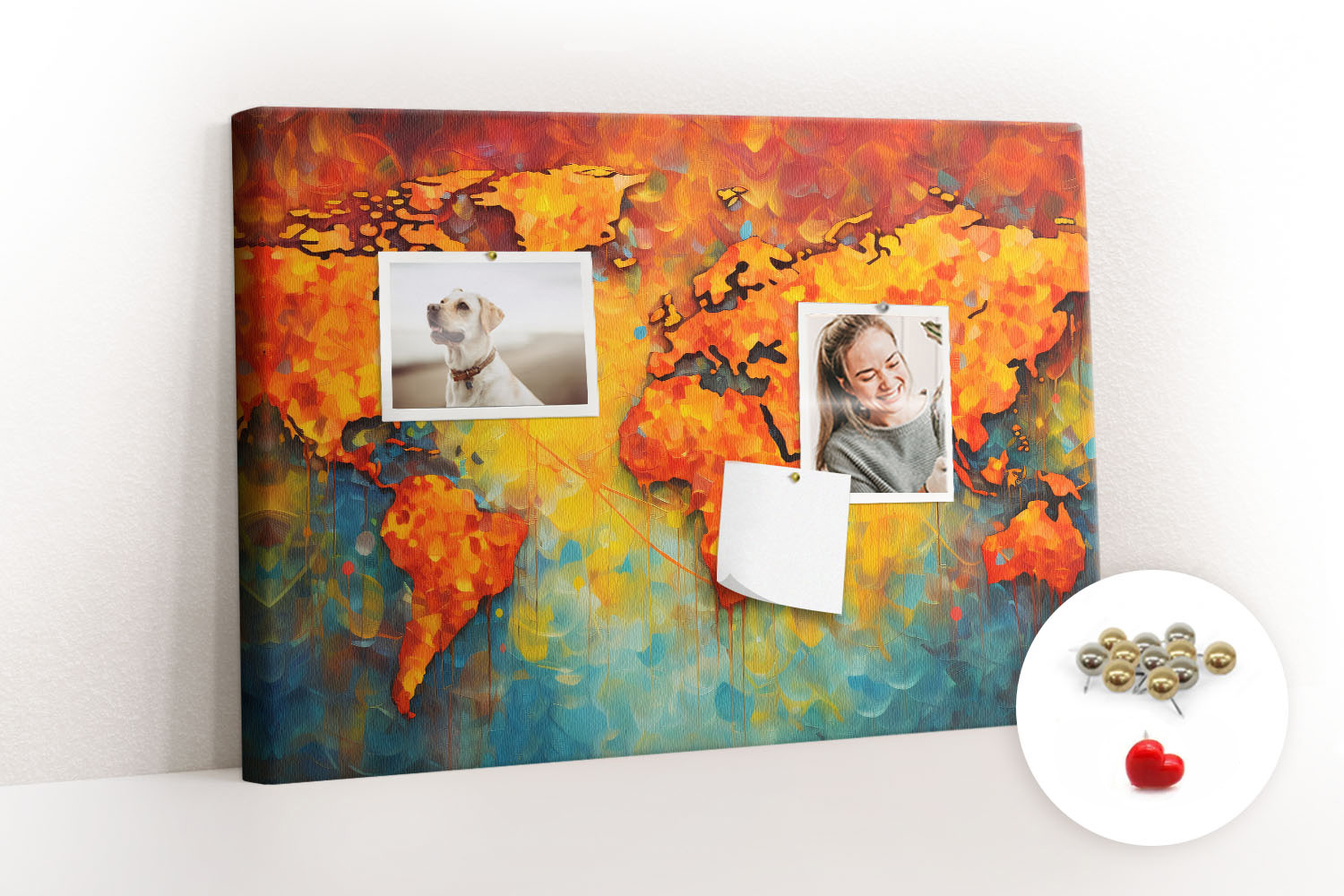 Tablica korkowa 60x40 cm do salonu + pinezki Mapa świata