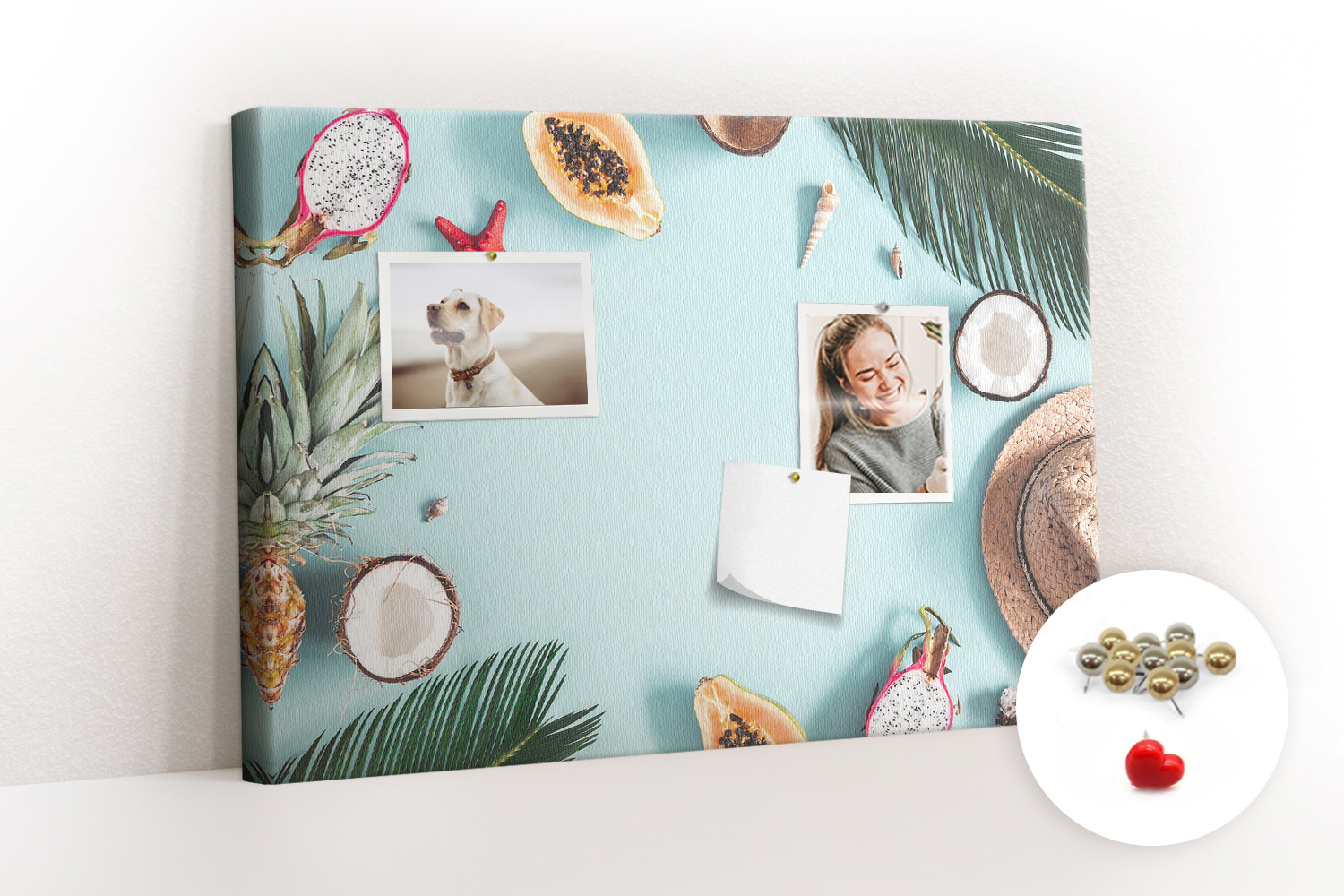 Tablica korkowa z nadrukiem z metalicznymi pinezkami