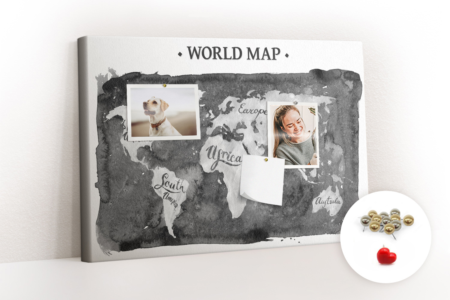 ? Kupując produkt otrzymujesz tablicę z pinezkami pokazanymi na miniaturce.