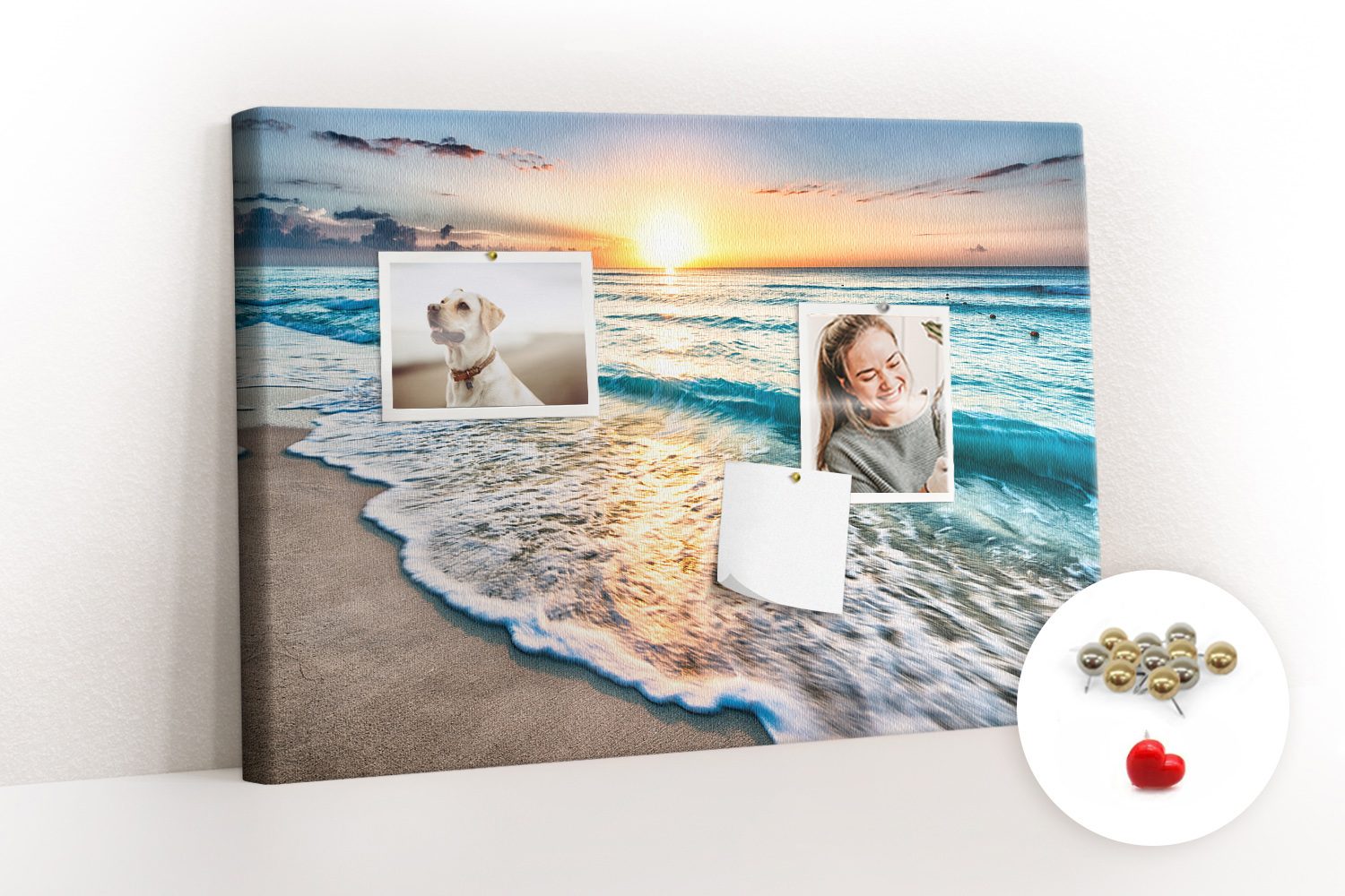 Tablica korkowa z nadrukiem z metalicznymi pinezkami