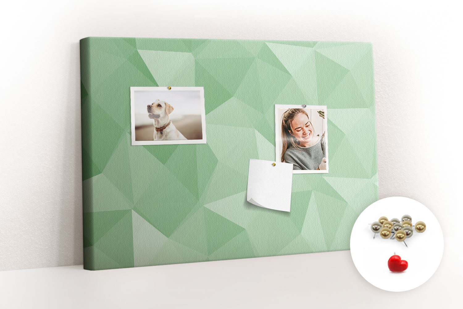 Tablica korkowa z nadrukiem z metalicznymi pinezkami