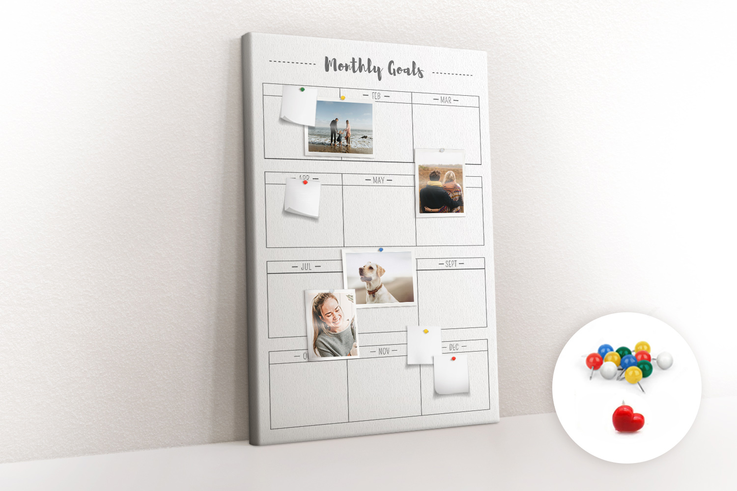 Tablica korkowa z nadrukiem z kolorowymi pinezkami