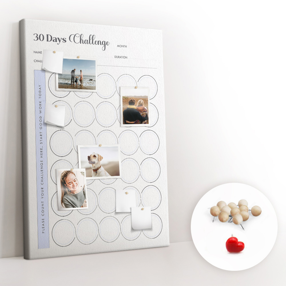 Przedstawiam Państwu niezwykłą okazję - piękną tablicę korkową z pinezkami, która pomoże w organizacji, planowaniu oraz wyrażaniu kreatywności. Ta funkcjonalna i estetyczna tablica jest doskonałym dodatkiem do każdego domu, biura czy przestrzeni edukacyjnej.