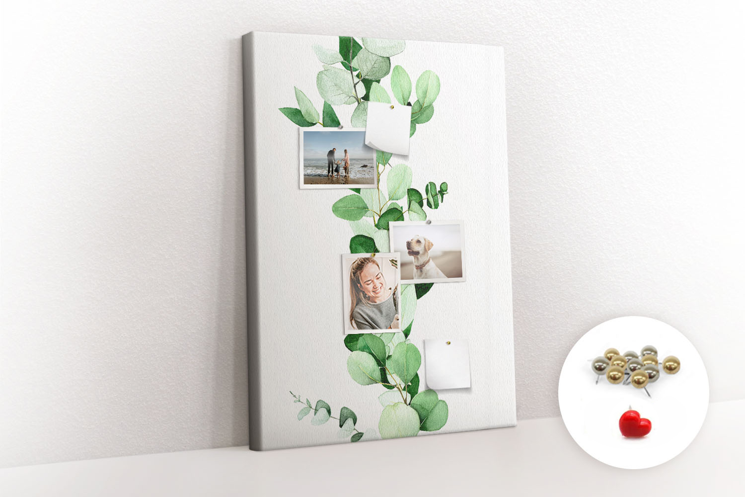 Tablica korkowa z nadrukiem z metalicznymi pinezkami