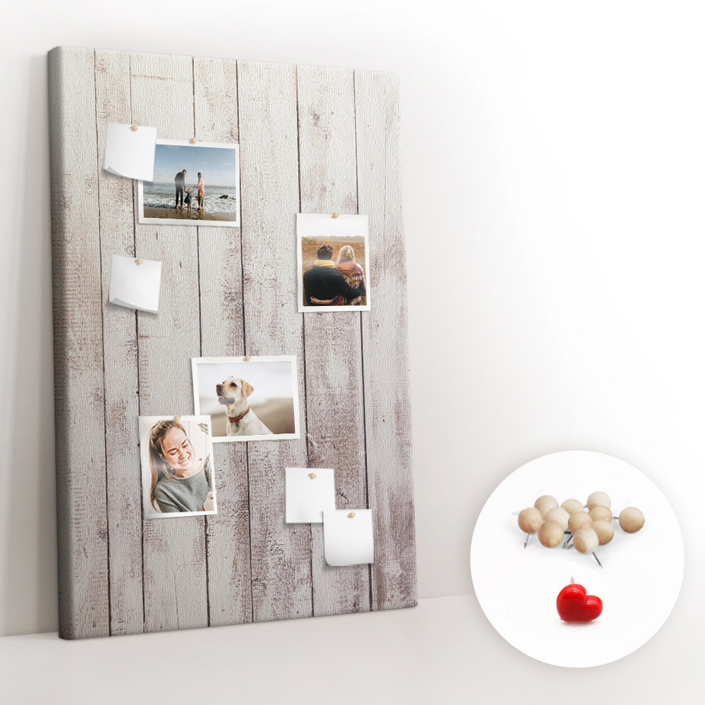 Tablica korkowa z nadrukiem z drewnianymi pinezkami