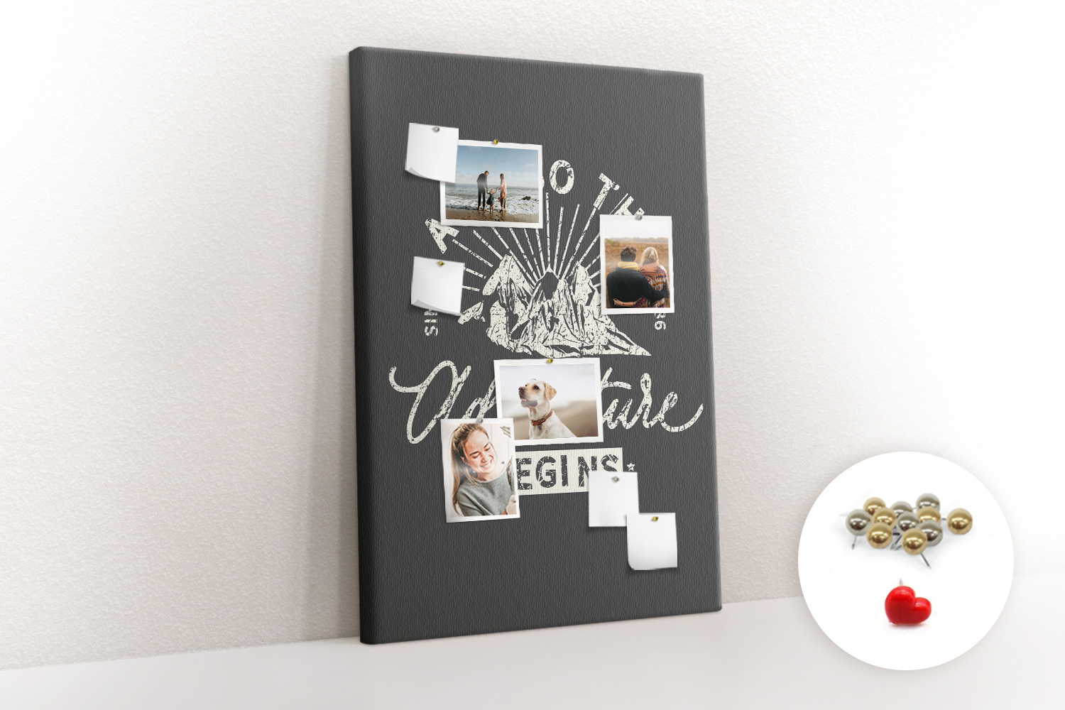 Tablica korkowa z nadrukiem z metalicznymi pinezkami
