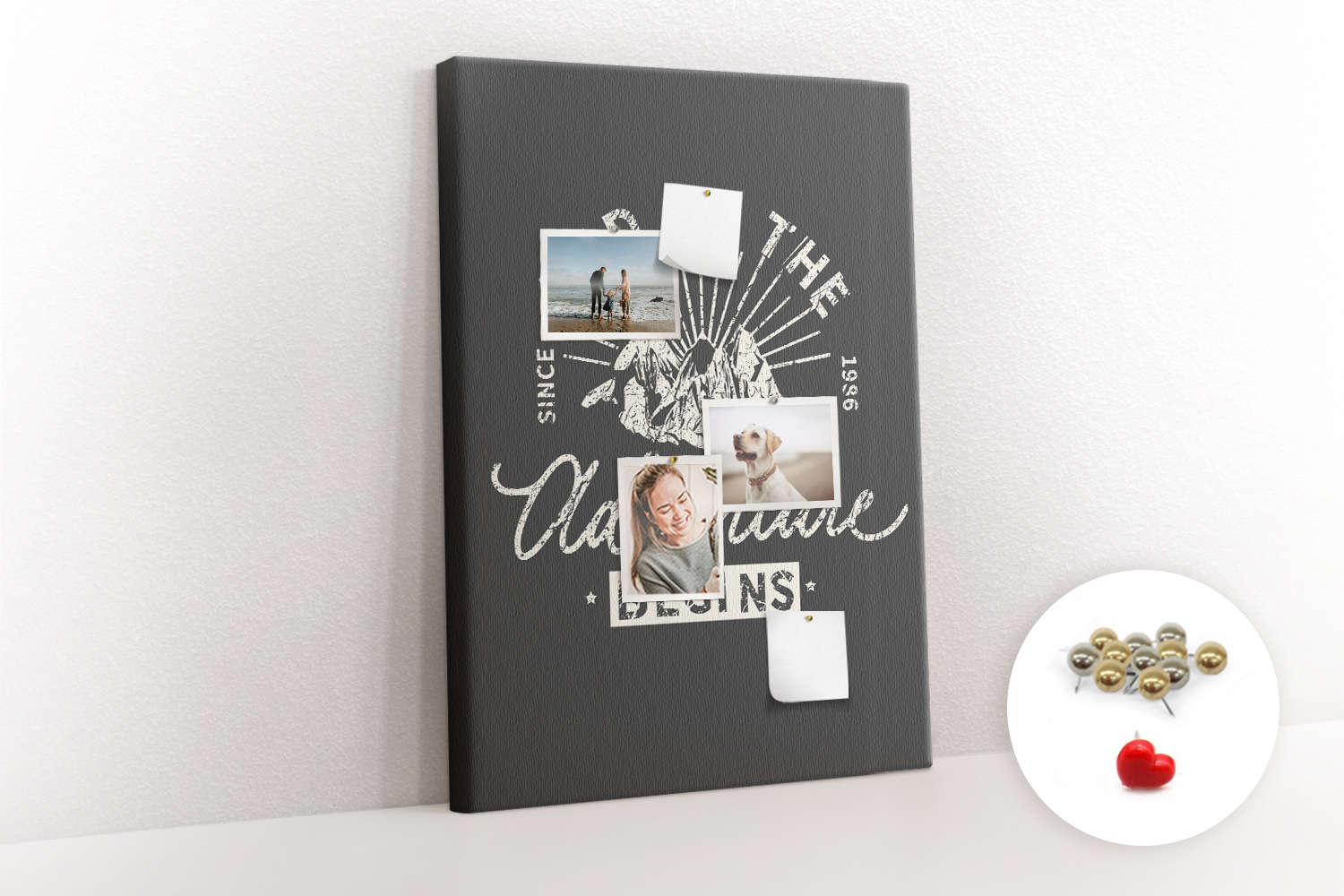 Tablica korkowa z nadrukiem z metalicznymi pinezkami