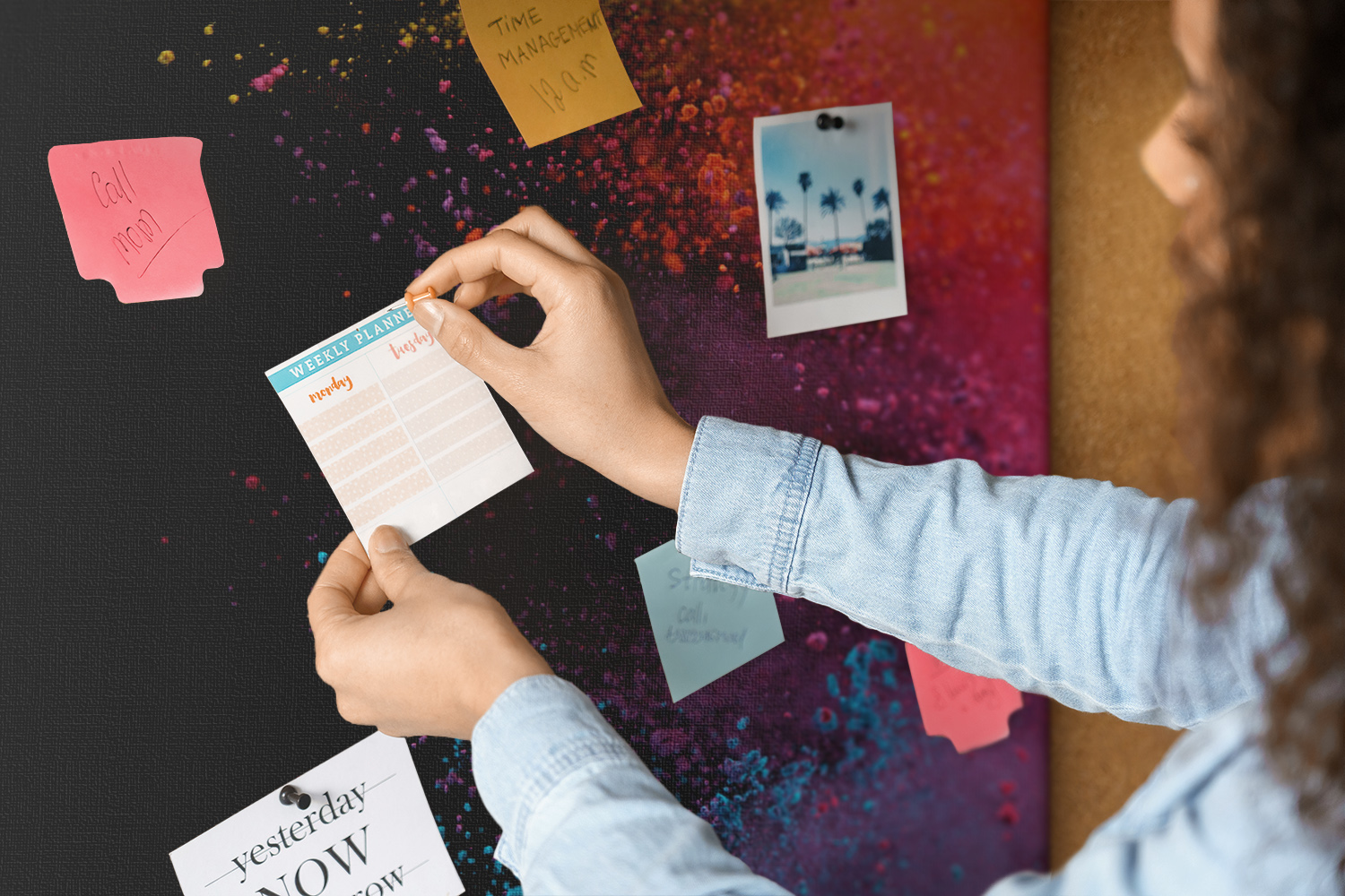 Nadruk na tablicy korkowej jest dostosowywany do Twoich preferencji. Możesz wybrać spośród szerokiej gamy wzorów, motywów, kolorów oraz rozmiarów.