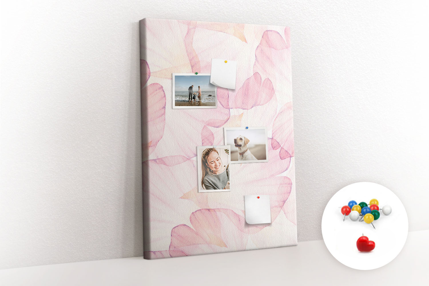 Tablica korkowa do biura nadruk Płatki kwiatów + pinezki, 1706081