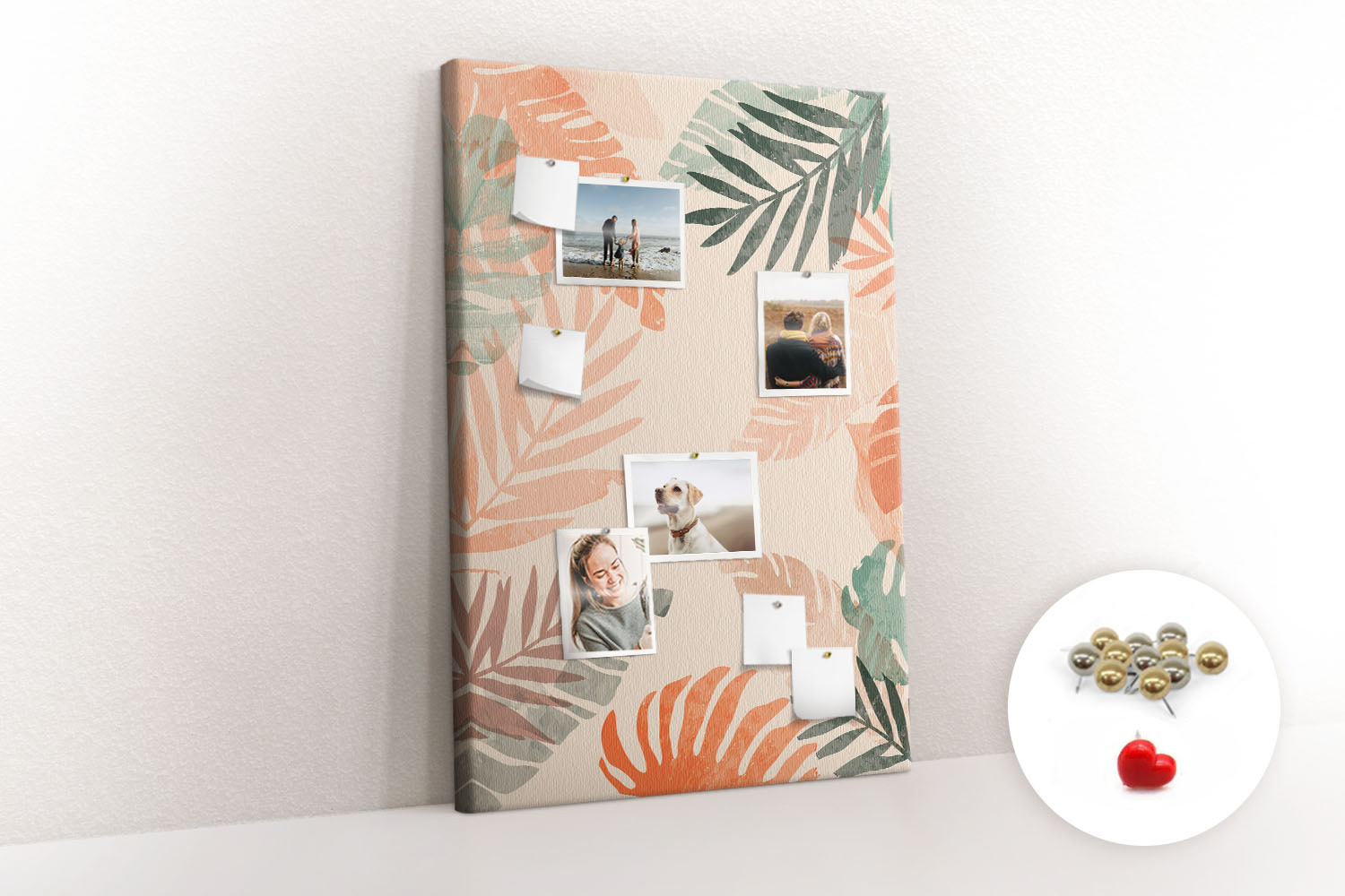 Tablica korkowa z nadrukiem z metalicznymi pinezkami