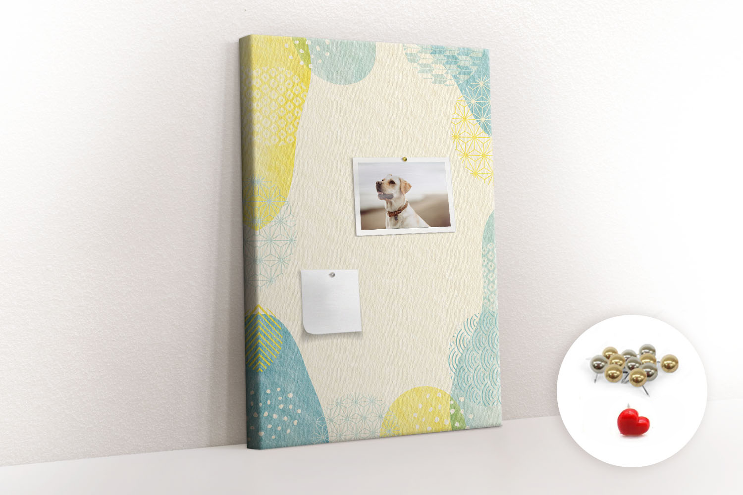 Tablica korkowa z nadrukiem z metalicznymi pinezkami