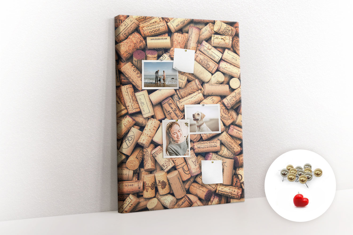 Tablica korkowa z nadrukiem z metalicznymi pinezkami