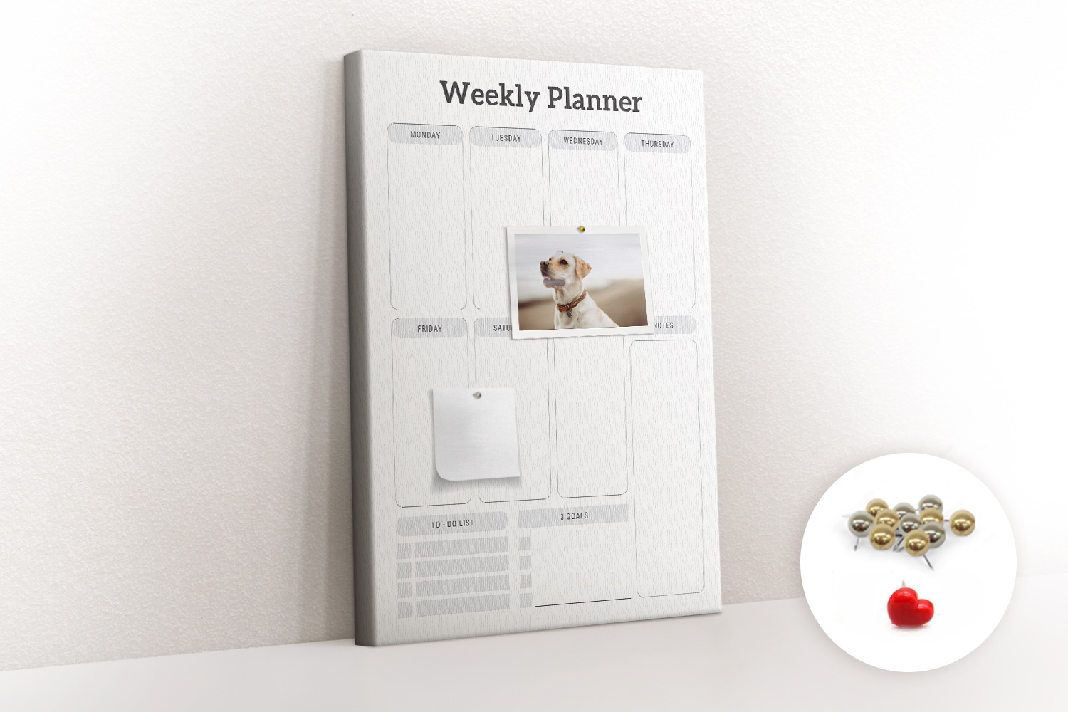 2. Pinezki: W zestawie znajdują się szpilki, które pomogą w przypięciu różnych notatek.