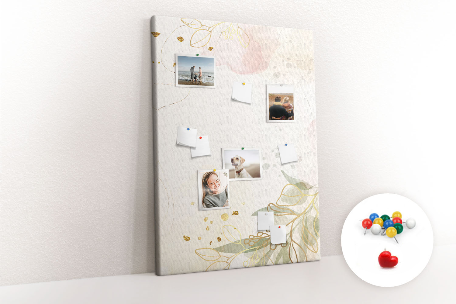 Tablica korkowa z nadrukiem z kolorowymi pinezkami