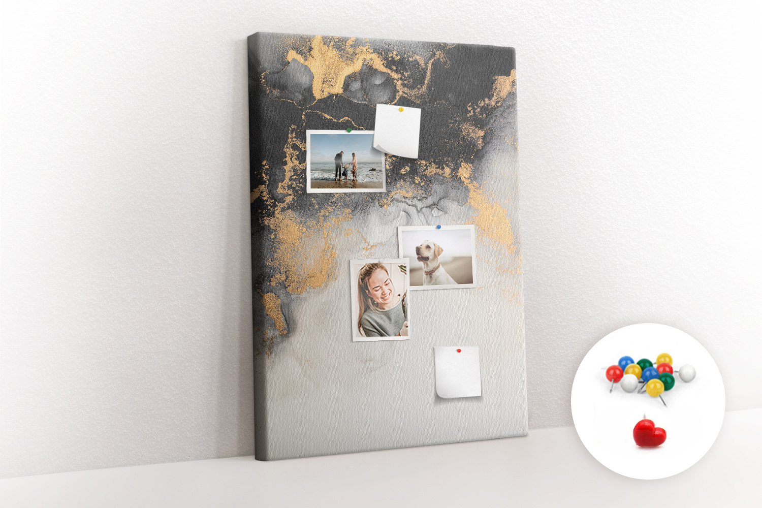 Tablica korkowa z nadrukiem z kolorowymi pinezkami