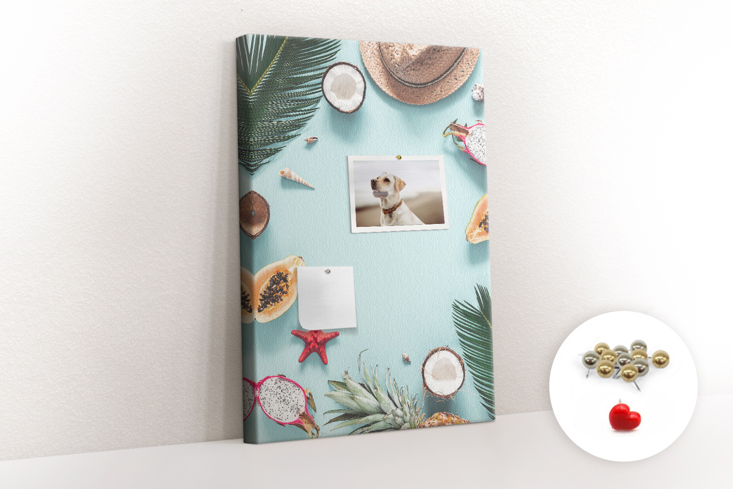 Tablica korkowa z nadrukiem z metalicznymi pinezkami