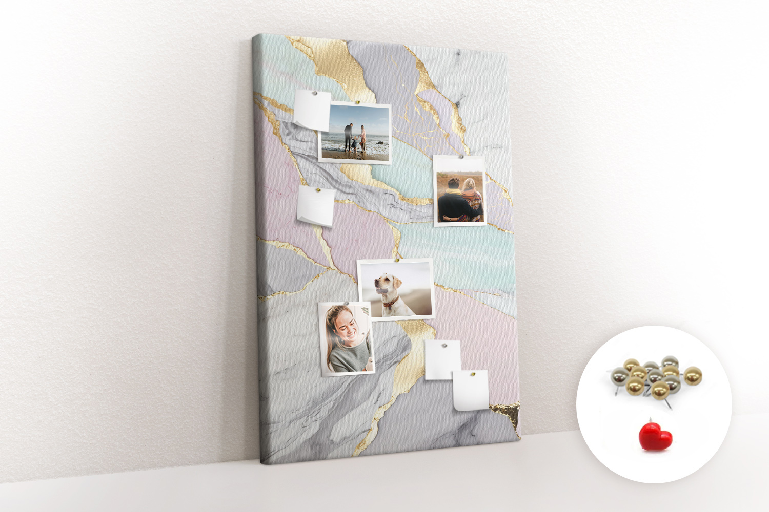 Tablica korkowa z nadrukiem z metalicznymi pinezkami