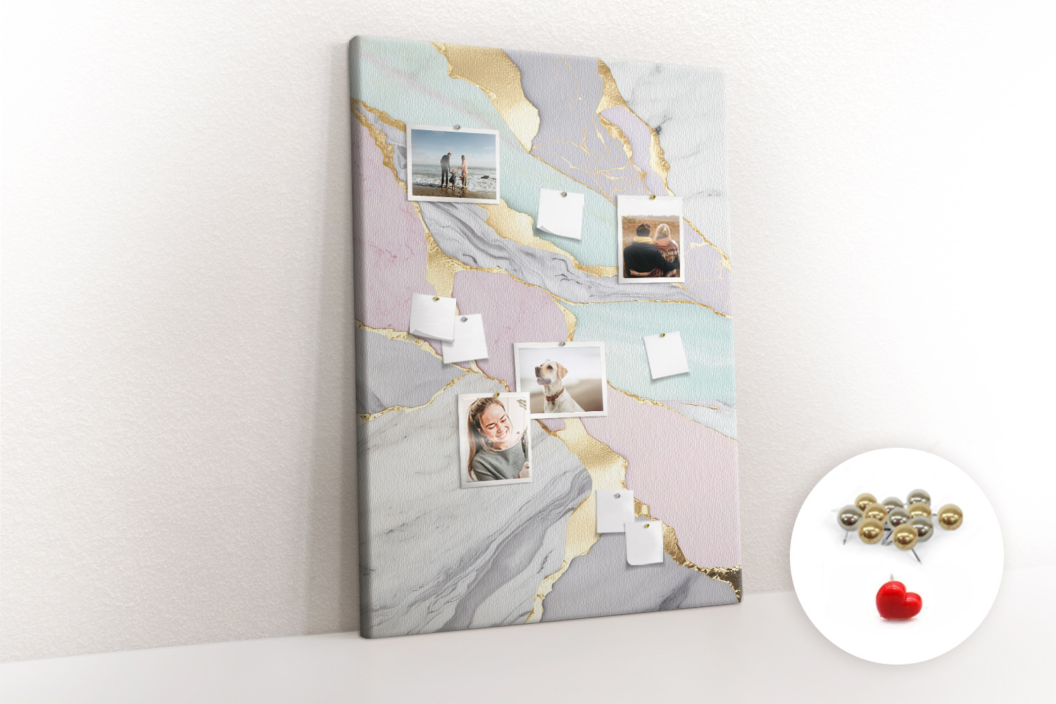 Tablica korkowa z nadrukiem z metalicznymi pinezkami