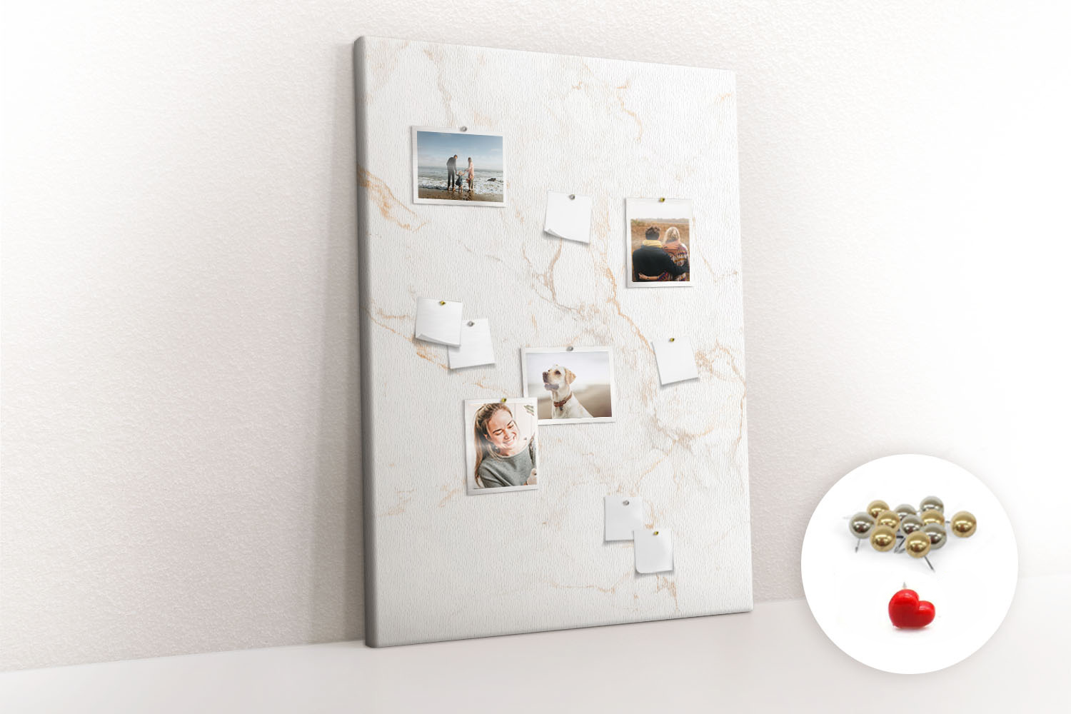 Tablica korkowa z nadrukiem z metalicznymi pinezkami