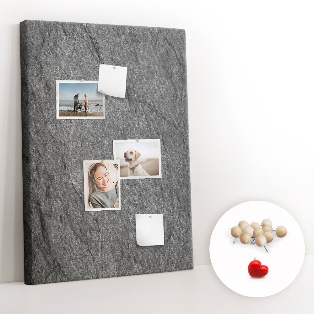 Tablica korkowa z nadrukiem z drewnianymi pinezkami