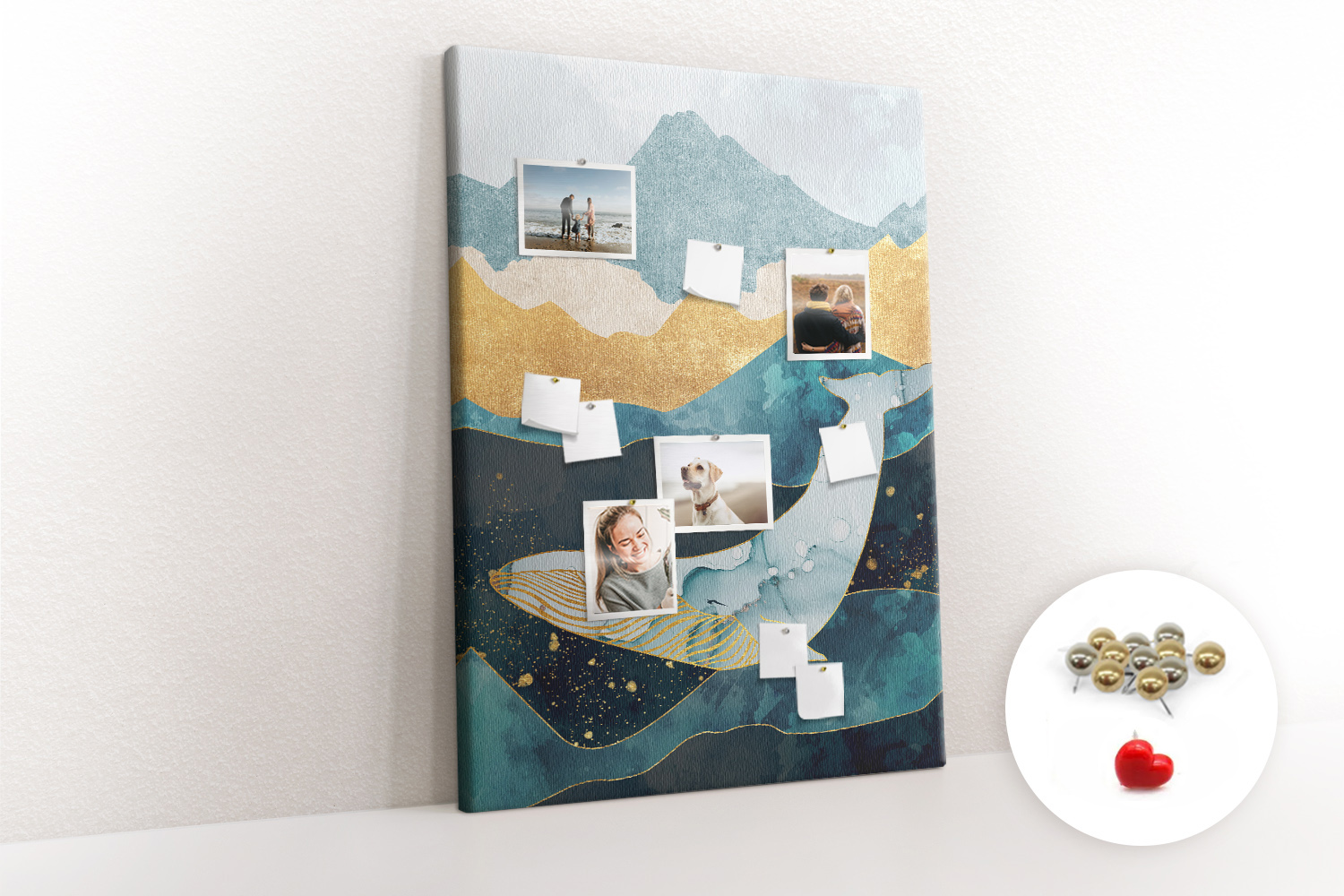 Tablica korkowa z nadrukiem z metalicznymi pinezkami