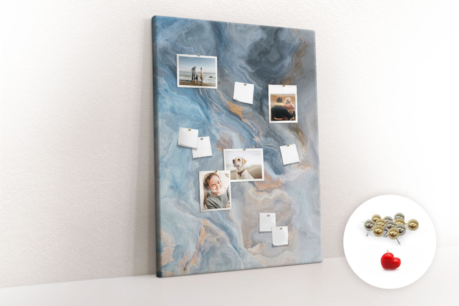 Tablica korkowa z nadrukiem z metalicznymi pinezkami