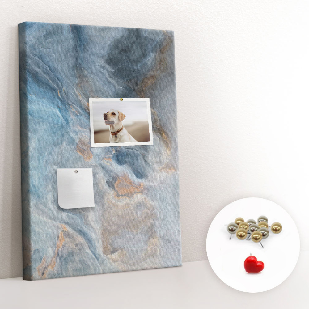 Tablica korkowa z nadrukiem z metalicznymi pinezkami