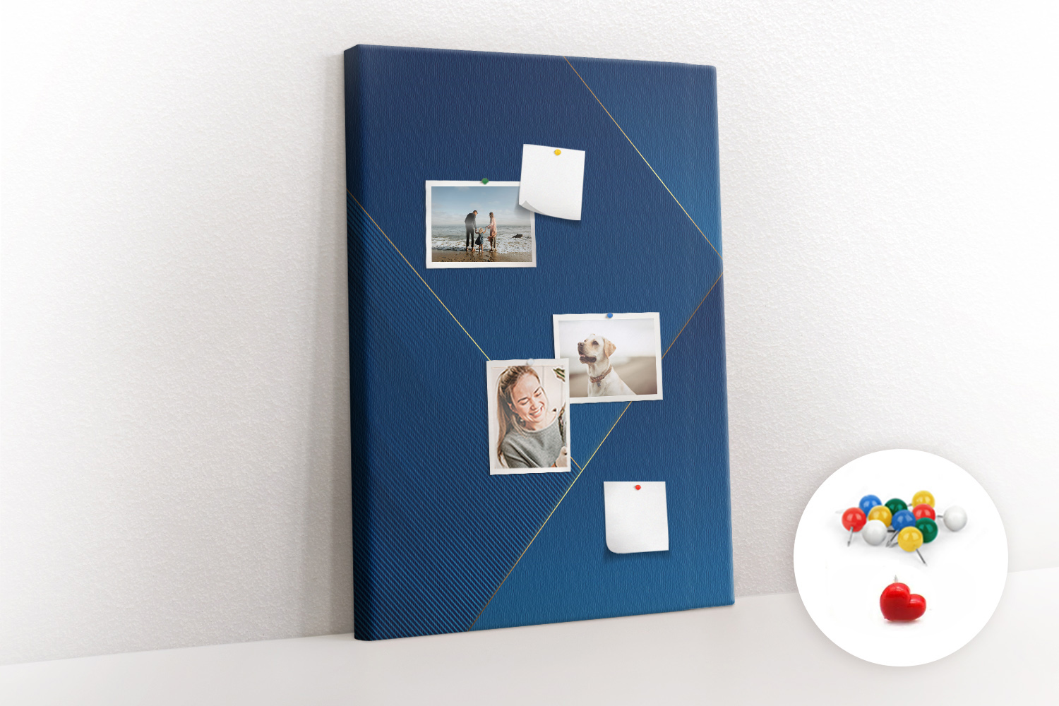 Tablica korkowa z nadrukiem z kolorowymi pinezkami