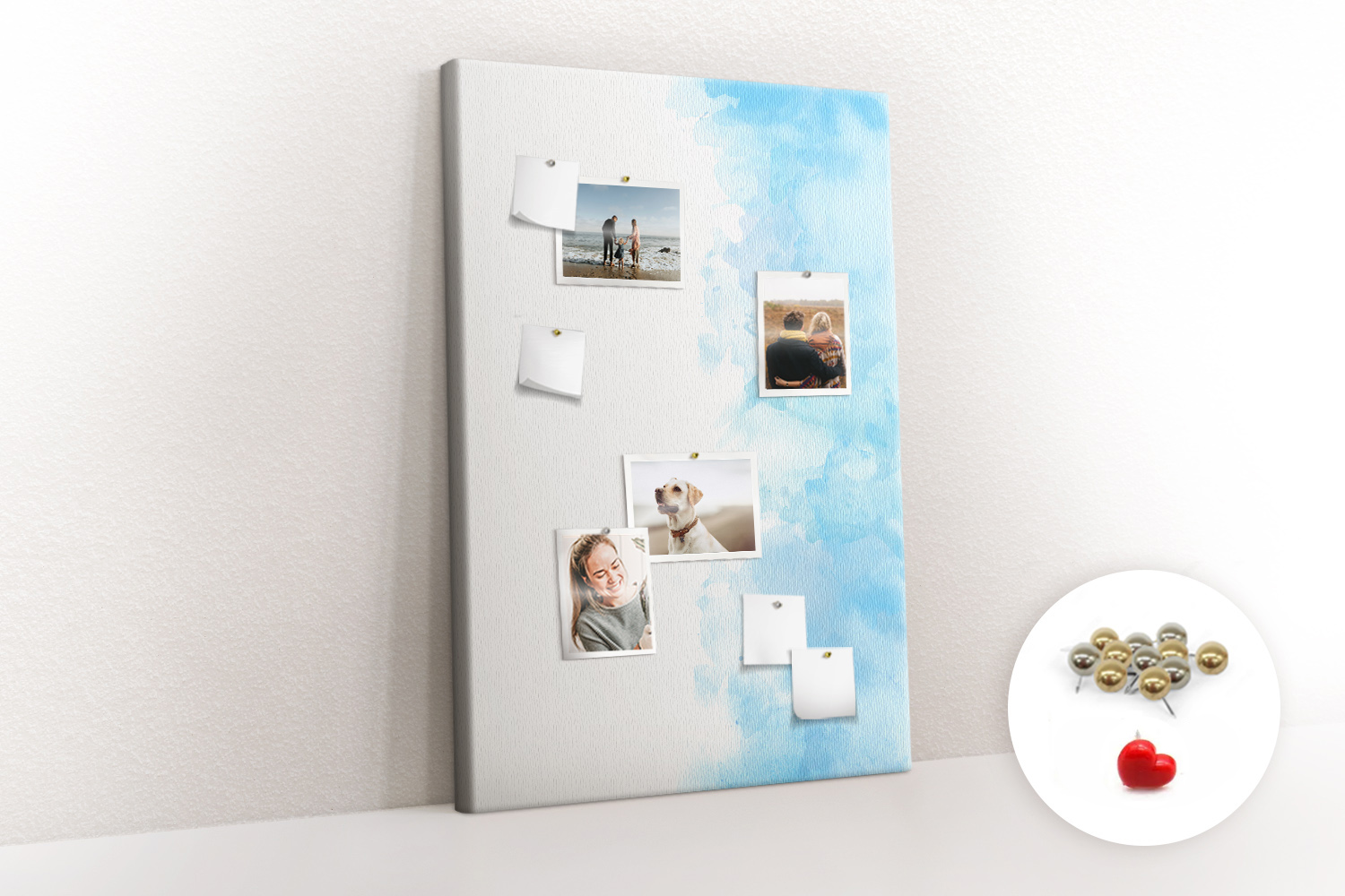Tablica korkowa z nadrukiem z metalicznymi pinezkami