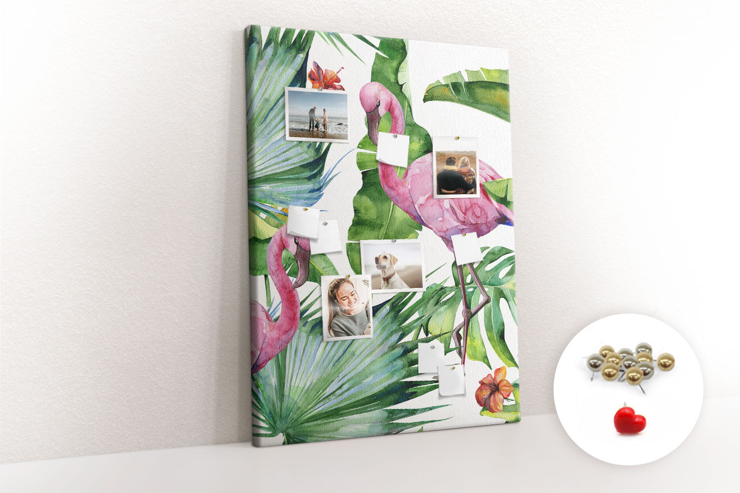 Tablica korkowa z nadrukiem z metalicznymi pinezkami