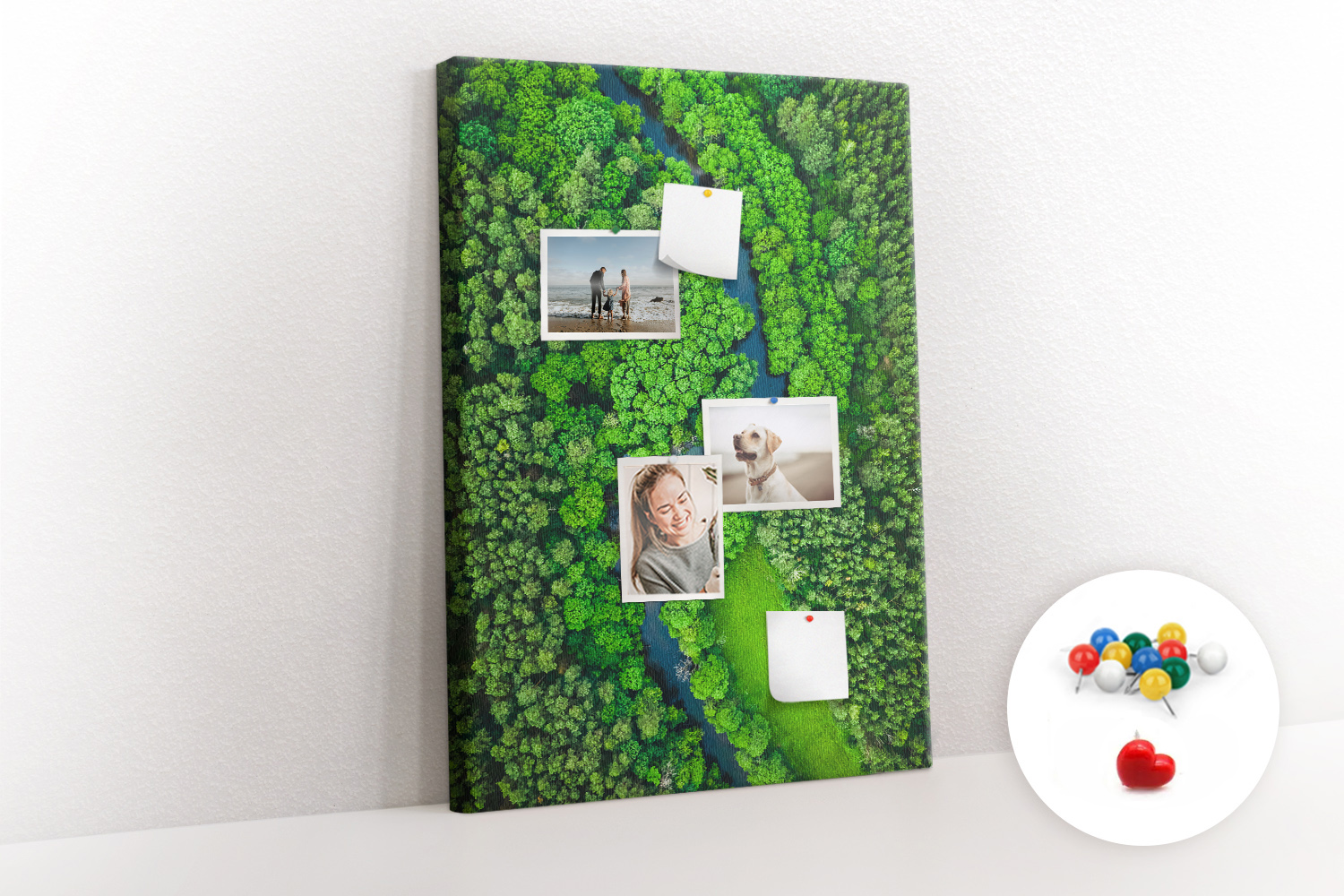 Tablica korkowa z nadrukiem z kolorowymi pinezkami