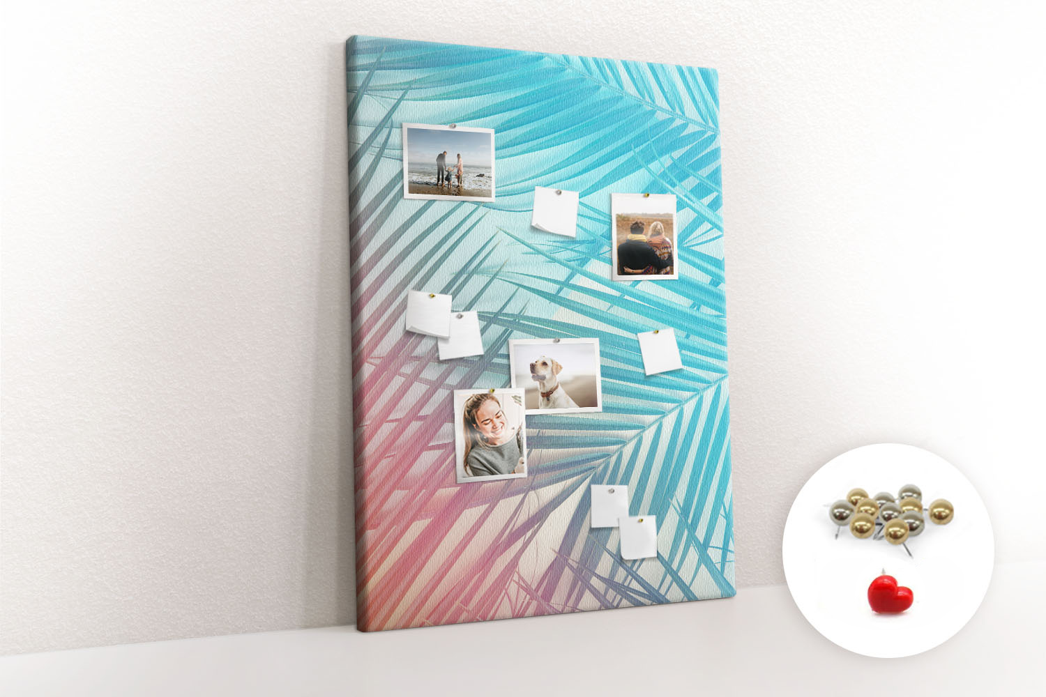 Tablica korkowa organizer nadruk Pastelowe liście + pinezki