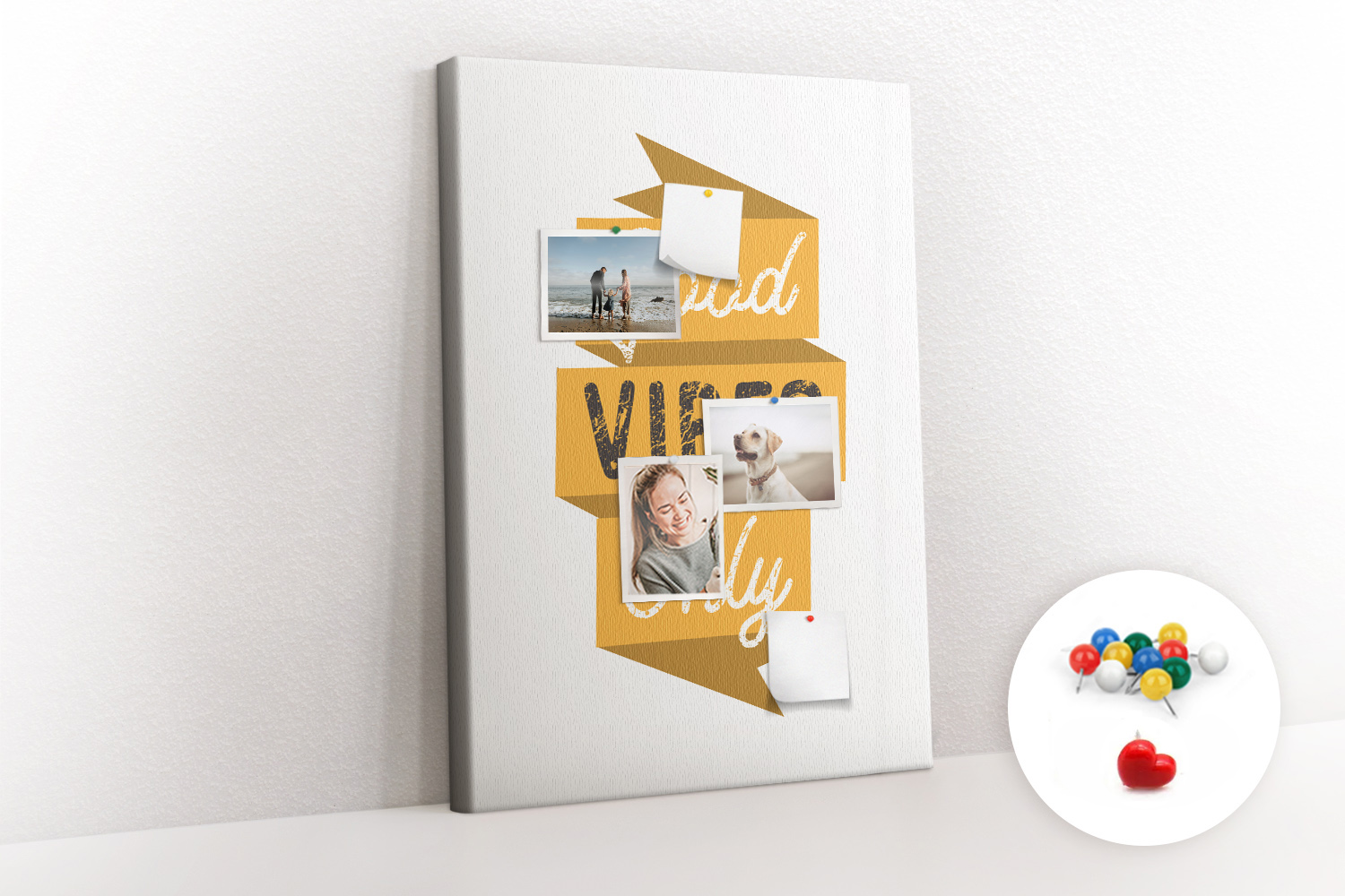 Tablica korkowa z nadrukiem z kolorowymi pinezkami