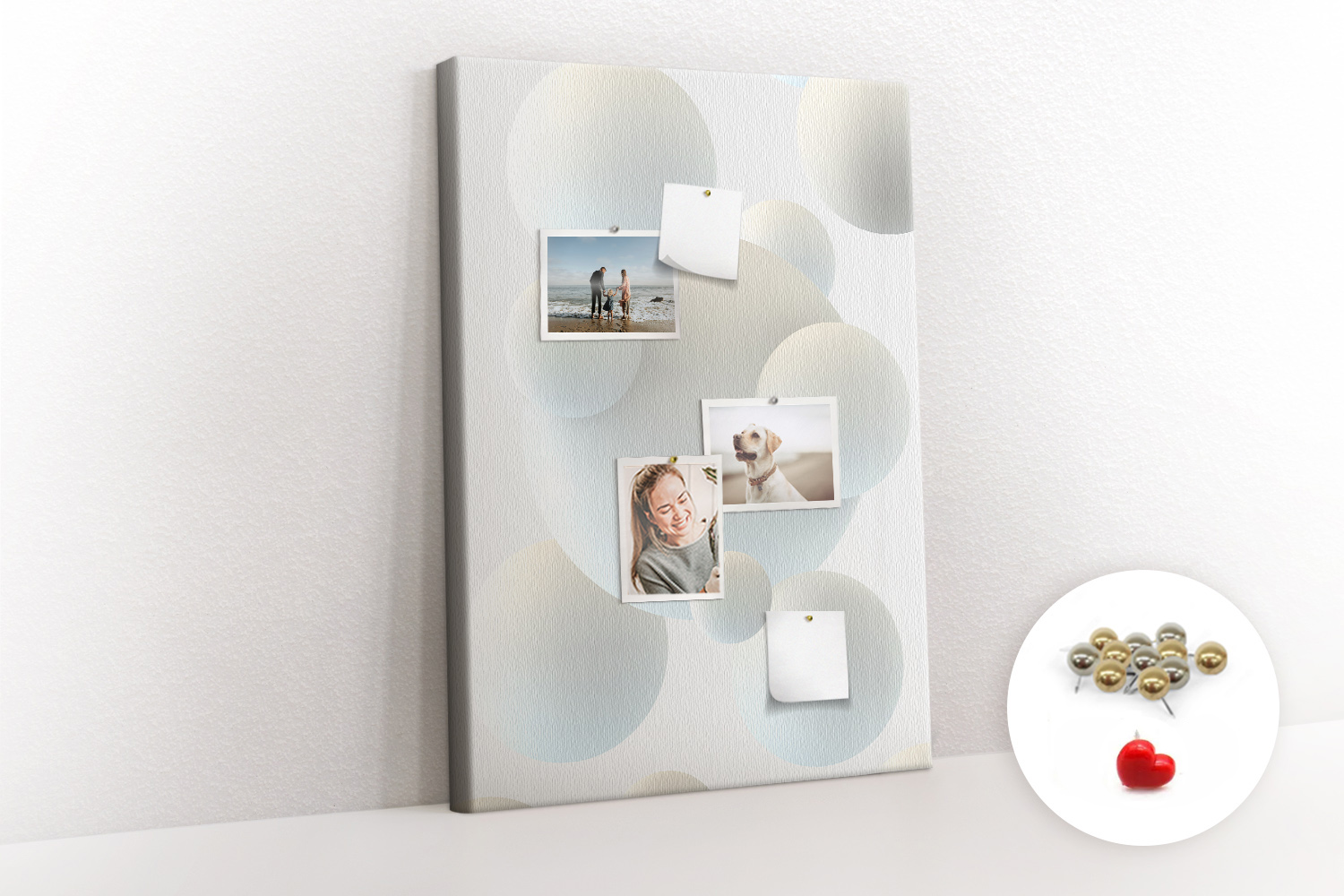 Tablica korkowa z nadrukiem z metalicznymi pinezkami